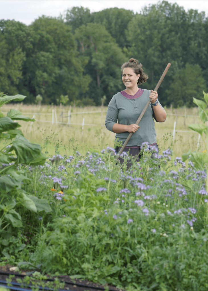 Je suis formée en maraîchage biologique au Crabe, une asbl à Jodoigne reconnue pour son cursus des cours A et B (cours agricoles) axés sur le maraîchage.